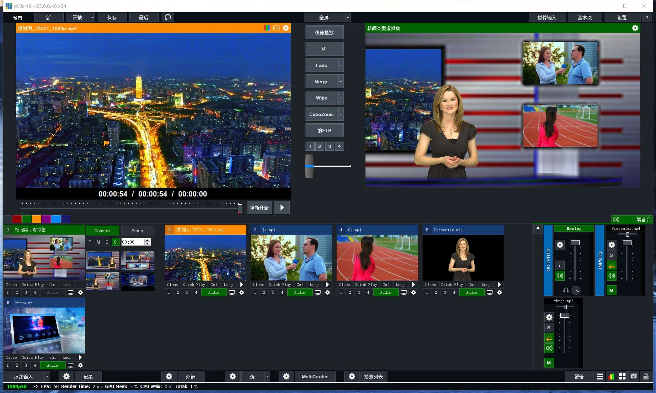 vMix25LED大屏播放软件导播切换直播推流无缝输出